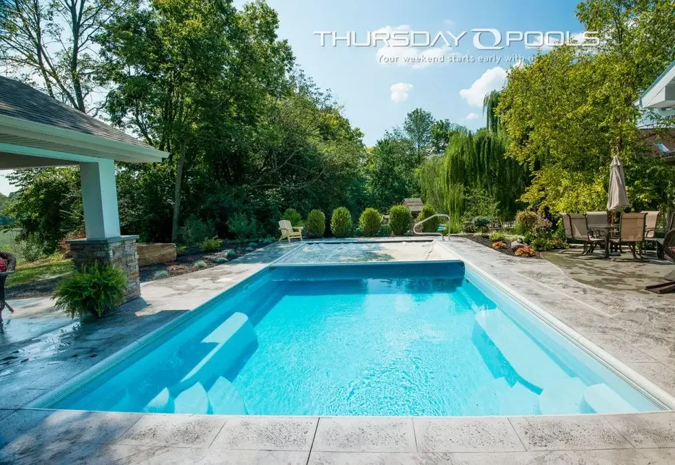 ✔︎ Dual benches with swim-outs provide comfort and convenience in the deep-end of the pool.